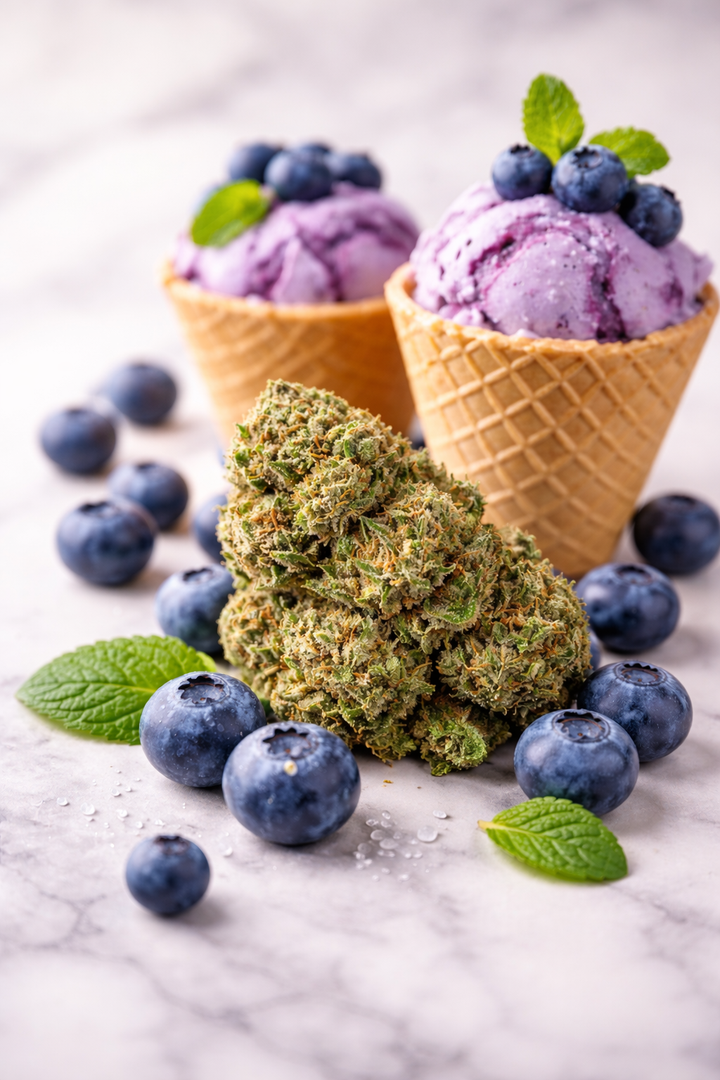 Plonge dans l’univers de la Blue Gelato, une fleur de CBD d’exception reconnue pour ses têtes larges, denses et résineuses. Sa robe, d’un vert profond ponctué de reflets violets, attire immédiatement le regard, tandis que son parfum évoque une glace à la myrtille, à la fois sucrée, acidulée et envoûtante.